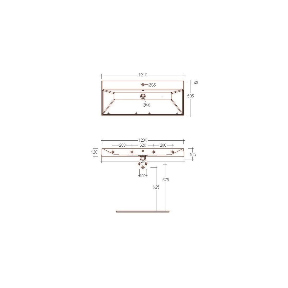 Kludi Resa Waschbecken mit Ablaufstopfen 121x50 cm rechteckig Möbel-Aufsatzwaschbecken schwarz 59WW12139