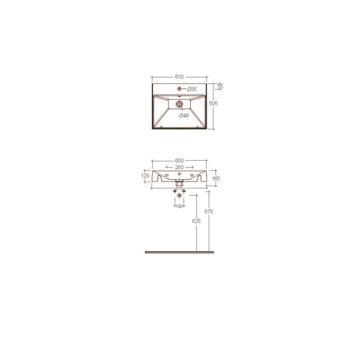 - Hängendes Keramikwaschbecken,