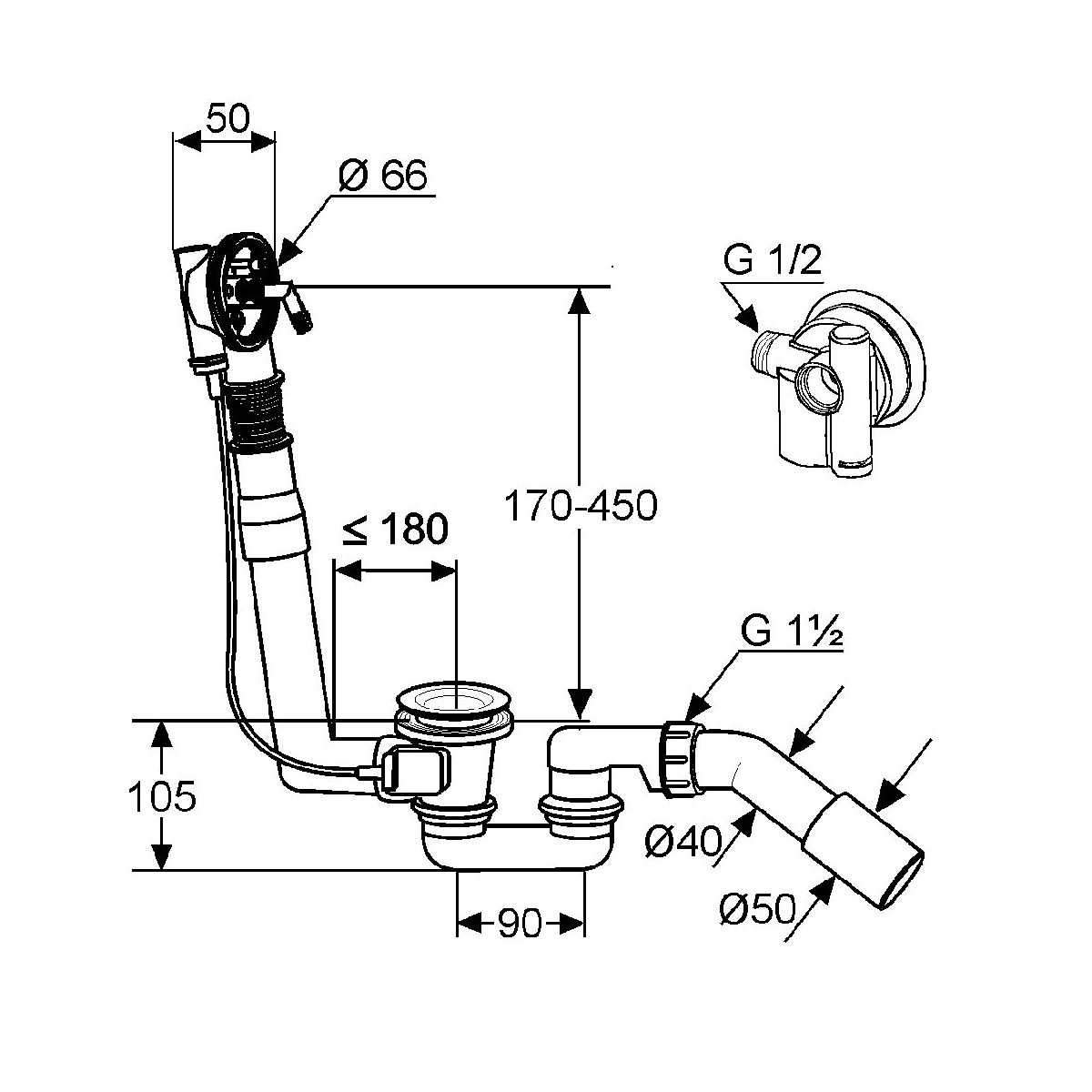 - Ablauf- und Überlaufgarnitur G 1 1/2
