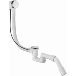 Standard-Ablauf- und Überlaufgarnitur für die Badewanne. Ihr großer Vorteil sind der ästhetisch gefertigte Stöpsel und der Drehknopf. Die Garnitur ist mit einem Knie-Siphon ausgestattet, der gegenüber Flaschensiphons den Vorteil hat, dass er nicht so leicht verstopft. So können Sie sich lange Zeit an einem reibungslosen Wasserablauf erfreuen.