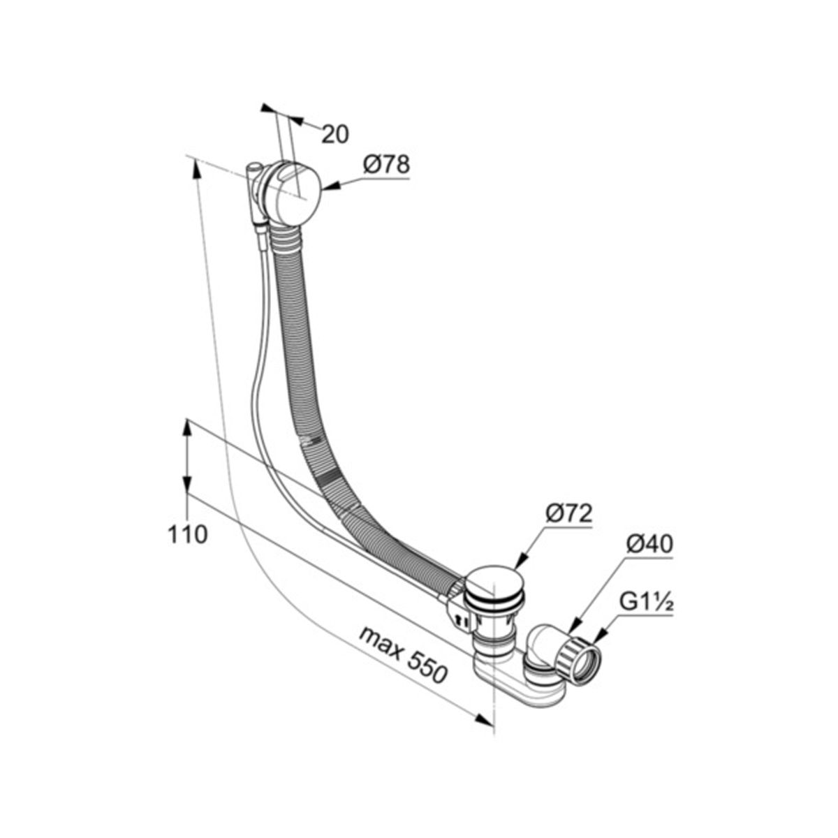 - mit flexiblem Überlaufrohr