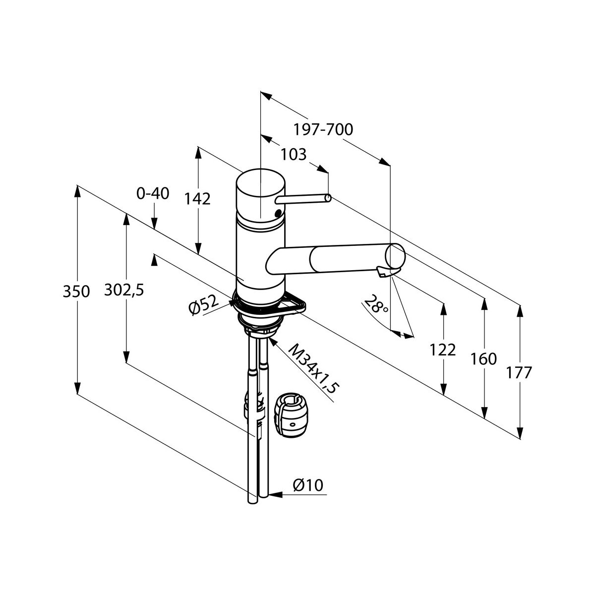- ausziehbarer, schwenkbarer Auslauf (110°)