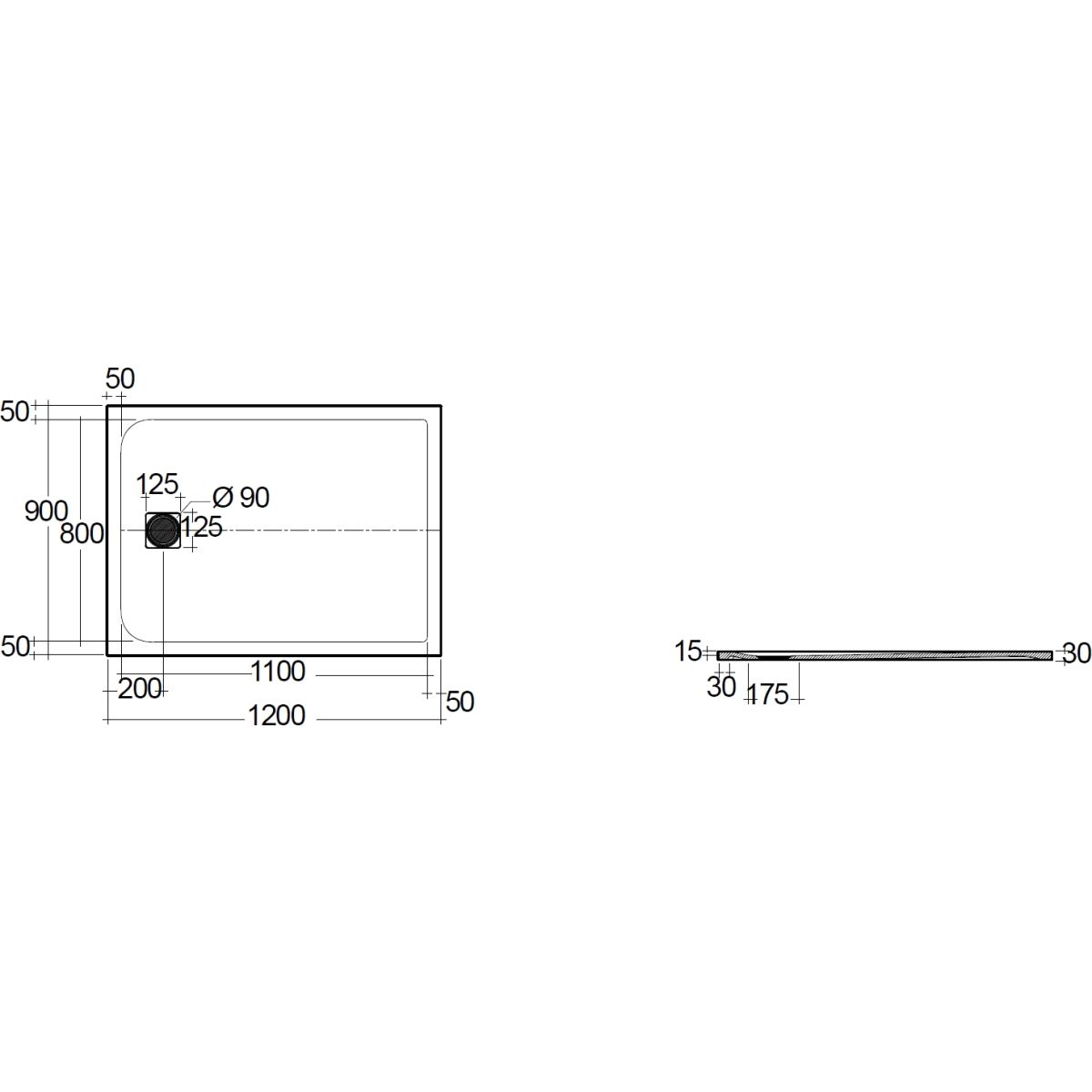 - rechteckige Duschwanne