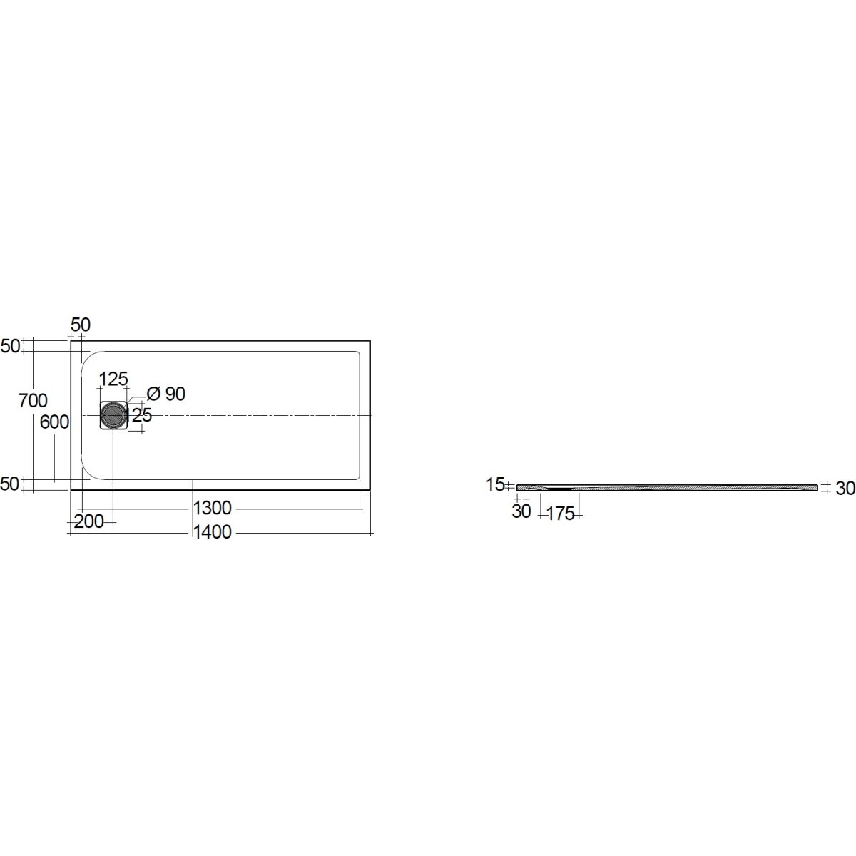 - rechteckige Duschwanne