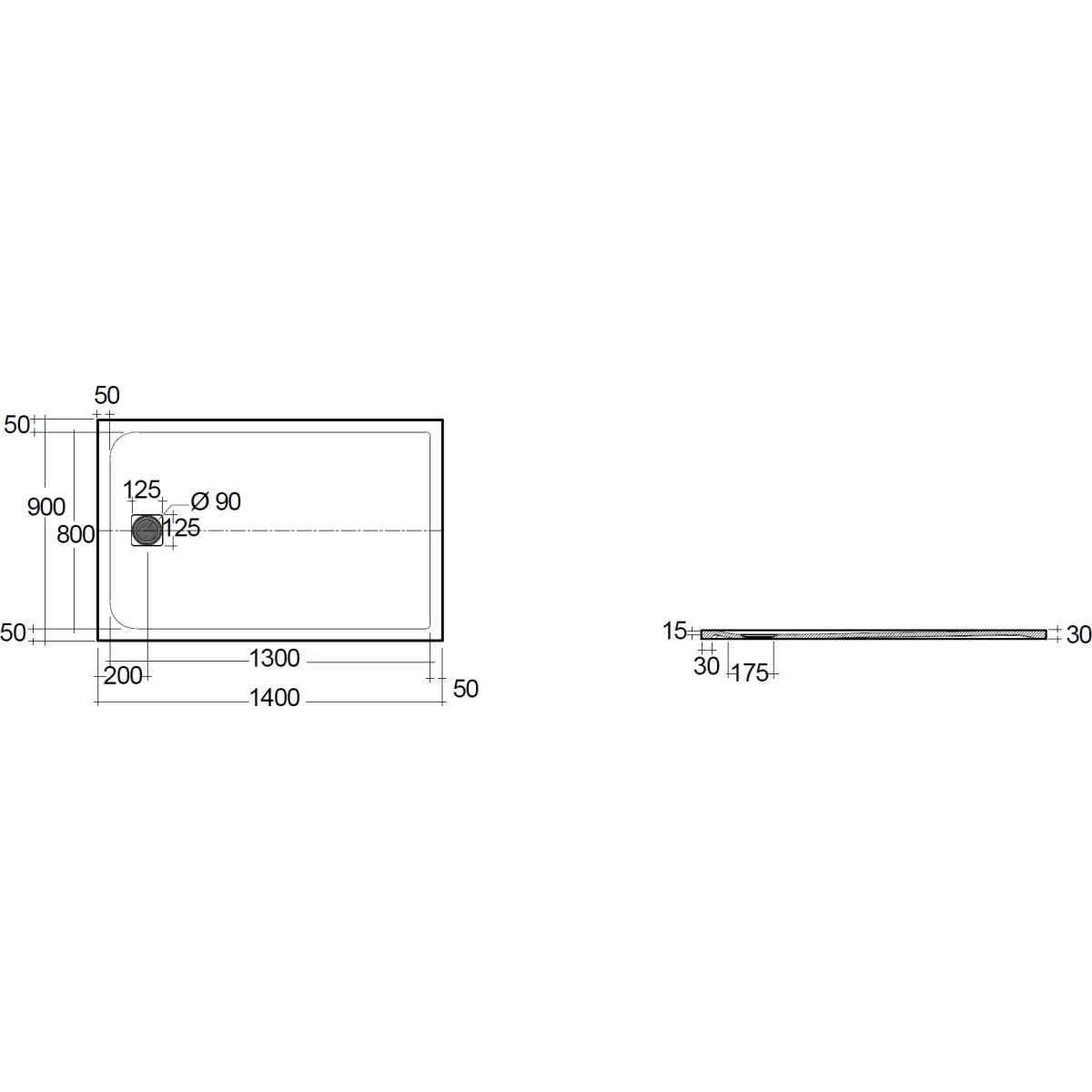 Kludi Terra Rechteckige Duschwanne 140x90 cm schwarz 09DW0639