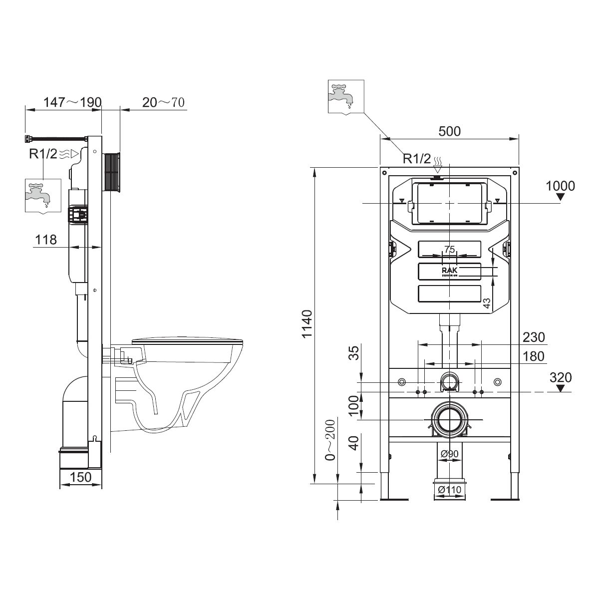 - Unterputzgestell für WC 12 cm