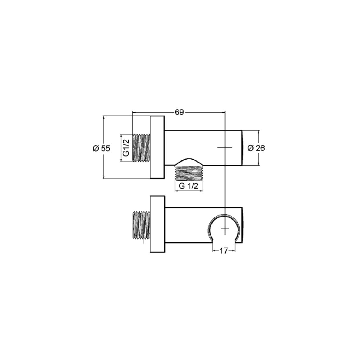 Wandanschluss mit Halterung für die Dusche – eine Kleinigkeit, die jedoch die Funktionalität des Duschsets effektiv verbessert. Sie können ihn in beliebiger Höhe montieren, damit er Ihnen optimal dient. Die Halterung passt zu Schläuchen mit konischer Mutter. Durch sein schlichtes Design passt er zu jeder Armatur.