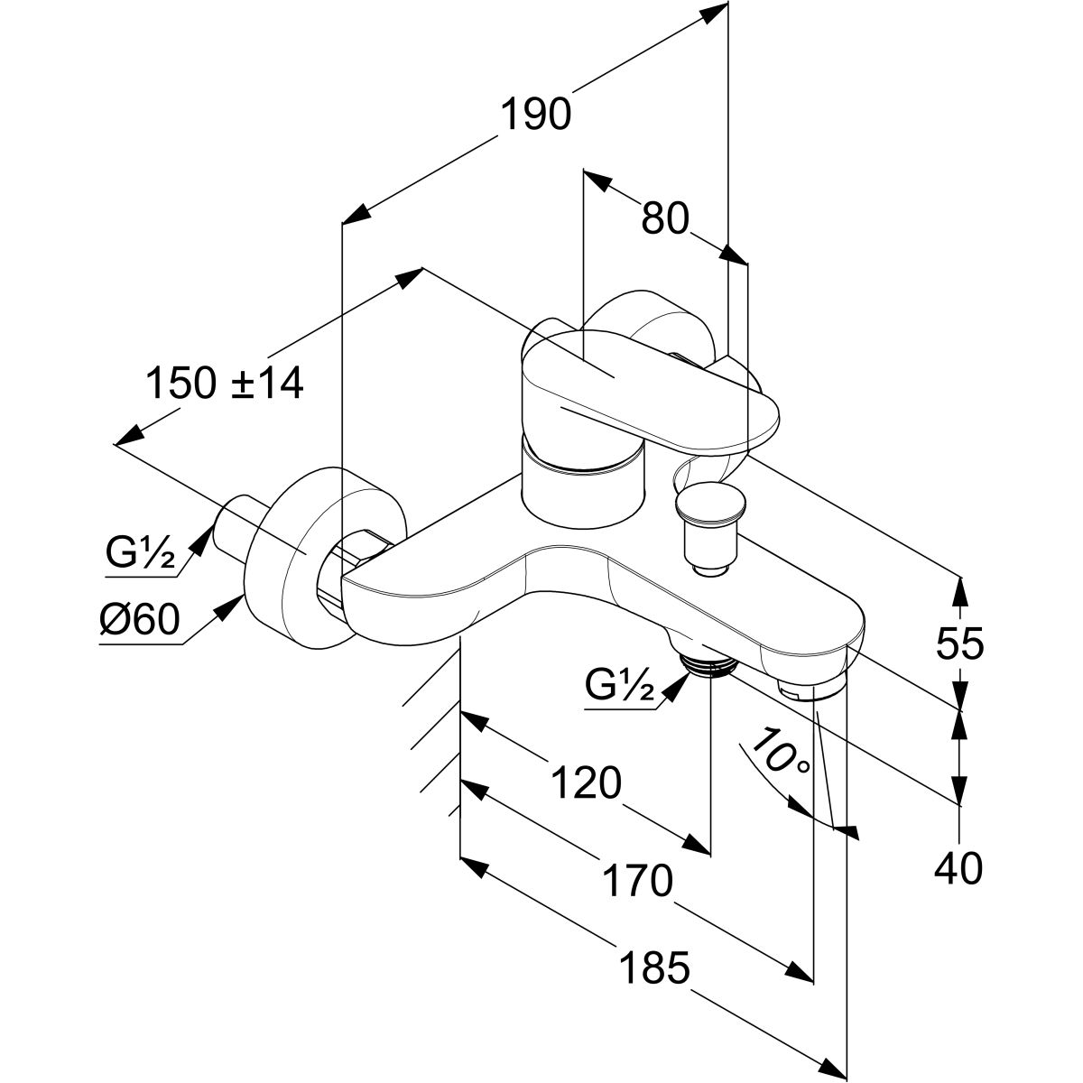 - Badewanne: Wasserdurchfluss 20 l/min bei einem Druck von 3 bar