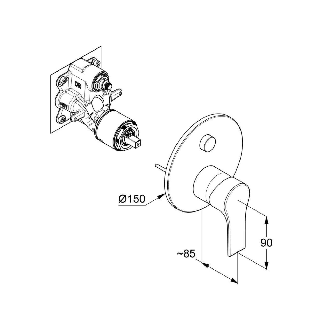 - Keramikkopf mit Begrenzer für den Warmwasserauslauf
