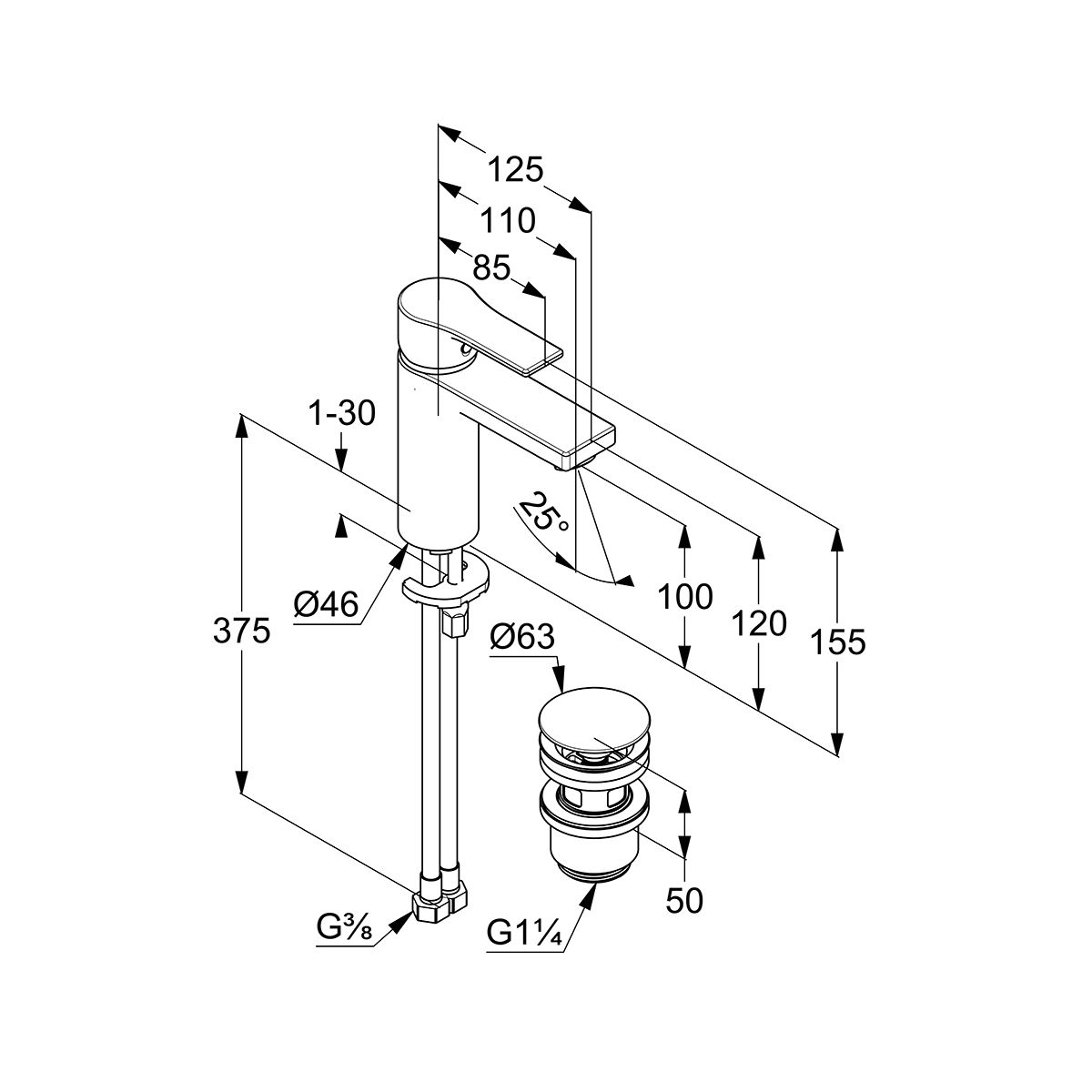 - Einhebel-Waschtischarmatur 100 DN 15