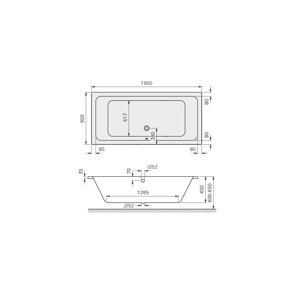 Kronenbach Cube Rechteckige Badewanne 190x90 cm weiß KBABD1990