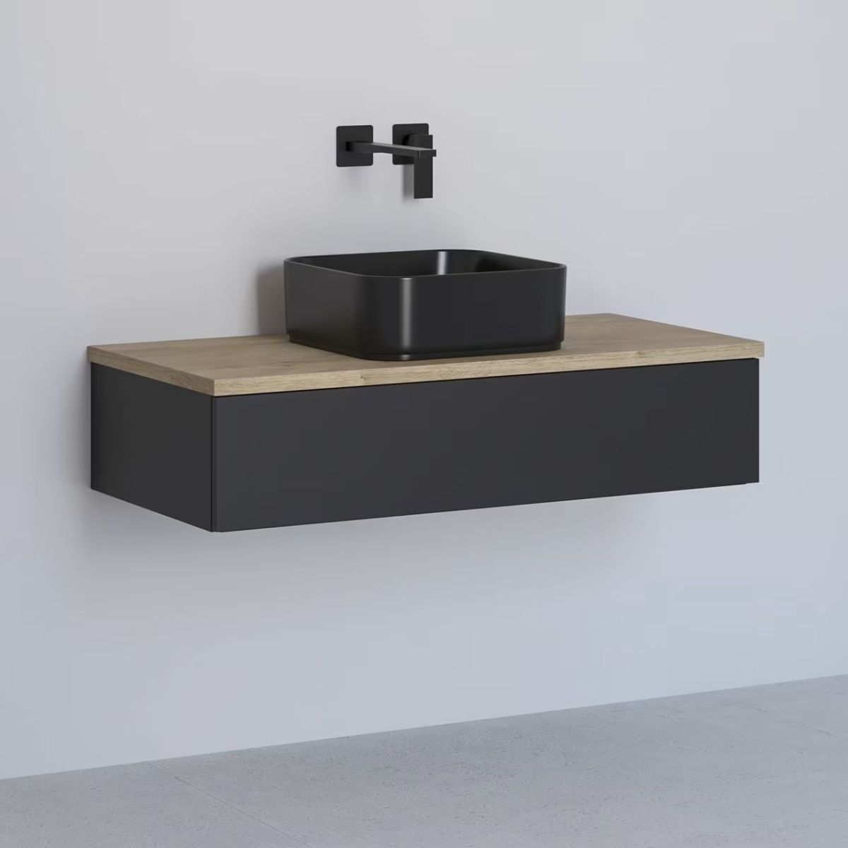 Kronenbach Cube Schrank mit Arbeitsplatte 101x48.7x23.5 cm Unterschrank hängend schwarz-eiche KBWTKOWTL1011SMGH