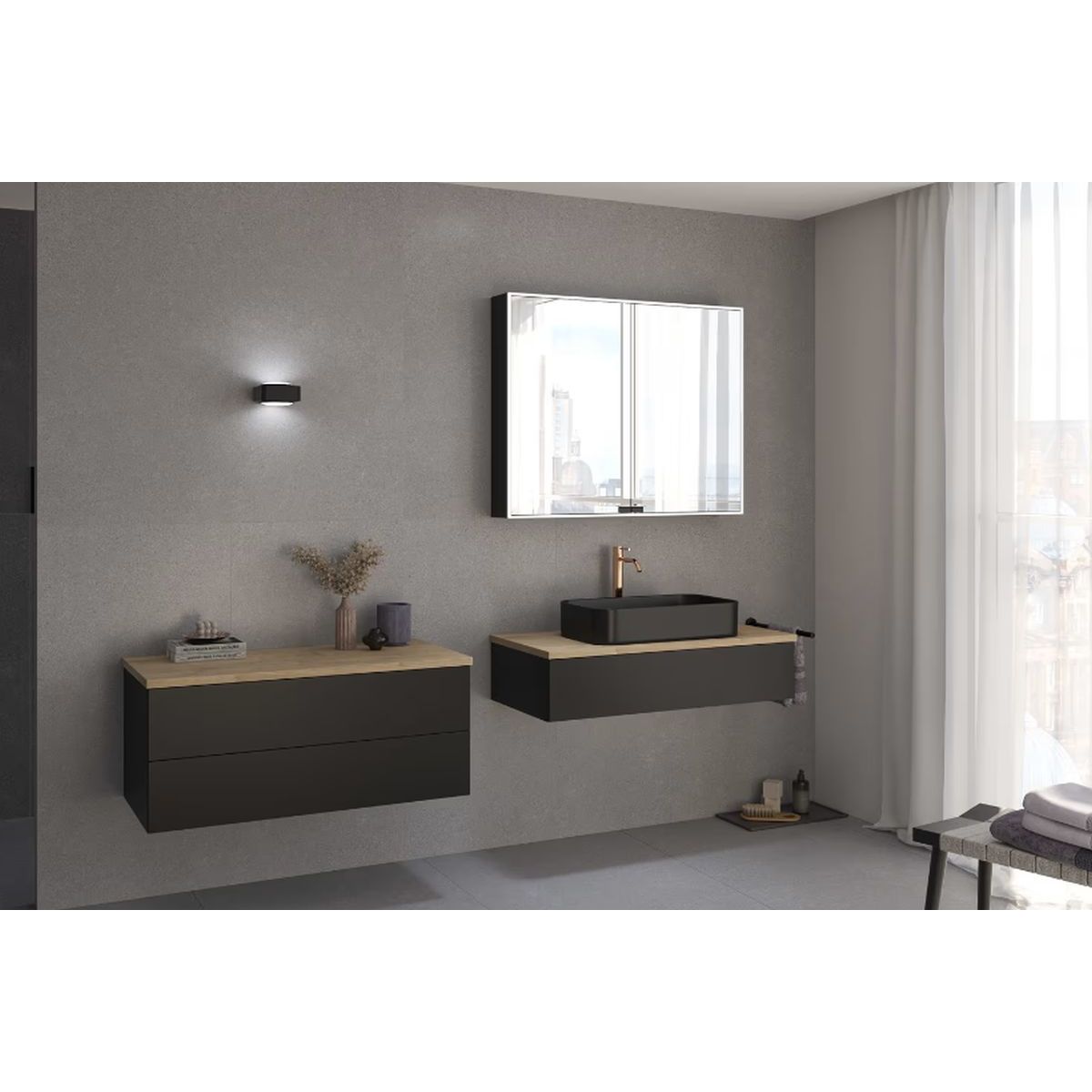 Waschbecken und Armaturen sind nicht im Lieferumfang enthalten.