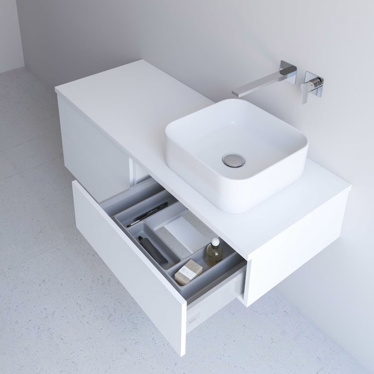 Kronenbach Cube Schrank mit Arbeitsplatte 121x48.7x44.5 cm Unterschrank hängend weiß KBWTKOWTL1213WH
