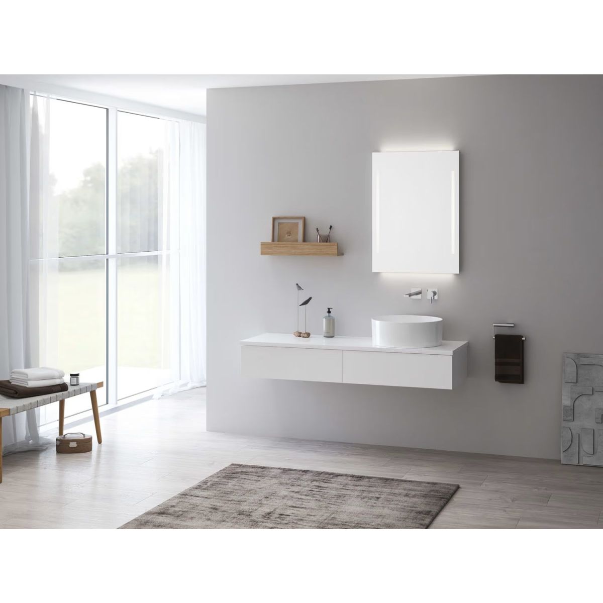 Waschbecken und Armaturen sind nicht im Lieferumfang enthalten.