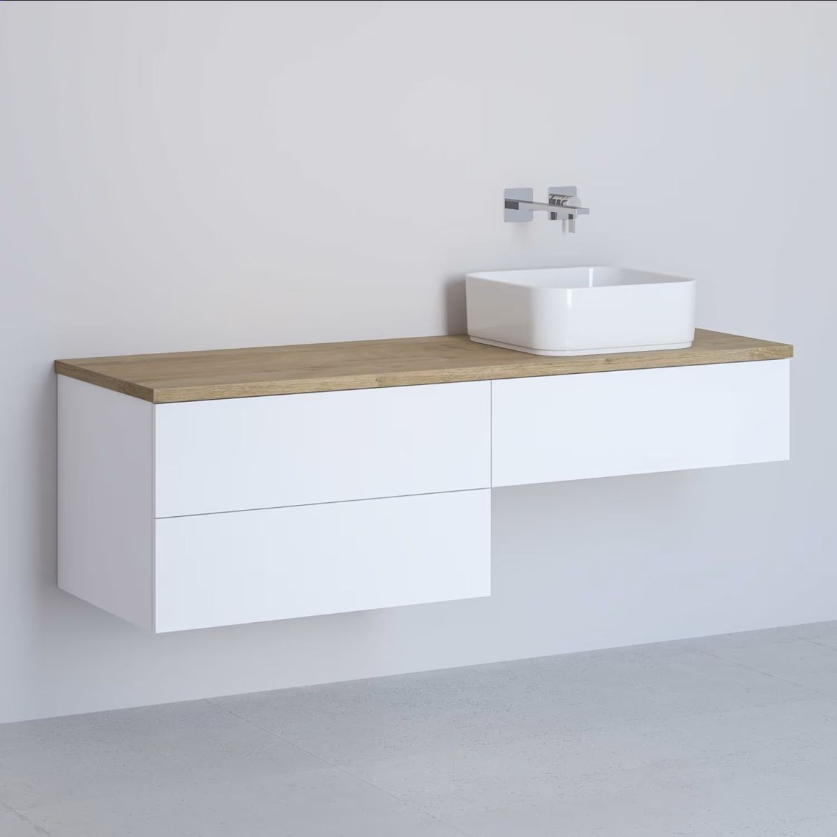 Kronenbach Cube Schrank mit Arbeitsplatte 141x48.7x44.5 cm Unterschrank hängend weiß-eiche KBWTKOWTL1413WHGH