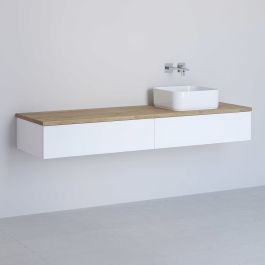 Kronenbach Cube Schrank mit Arbeitsplatte 161x48.7x23.5 cm Unterschrank hängend weiß-eiche KBWTKOWTL1612WHGH