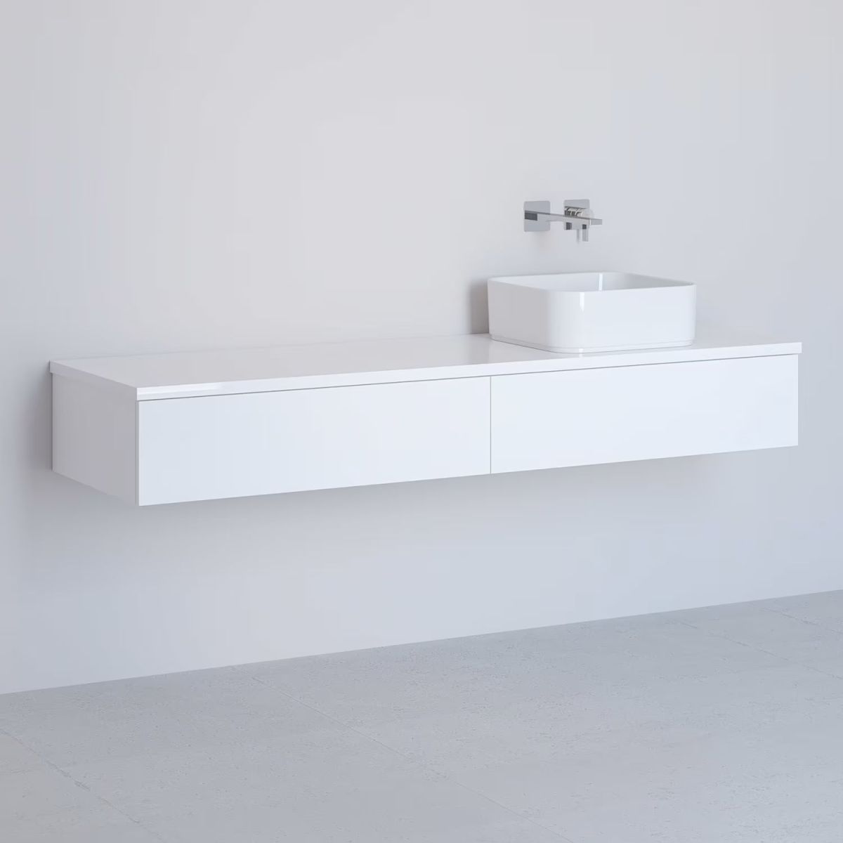 Waschtischunterschrank Kronenbach Cube 161 cm mit 2 Schubladen und Arbeitsplatte in Weiß glänzend