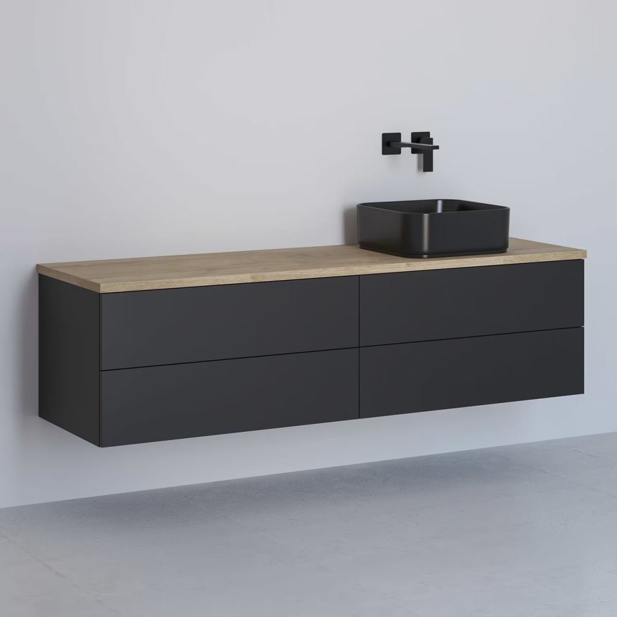 Kronenbach Cube Schrank mit Arbeitsplatte 161x48.7x44.5 cm Unterschrank hängend schwarz-eiche KBWTKOWTL1614SMGH