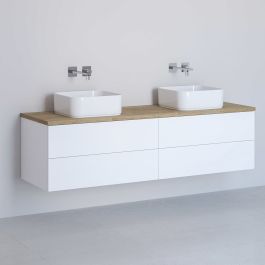 Waschtischunterschrank Kronenbach Cube 161 cm für 2 Waschbecken mit 4 Schubladen, mit Arbeitsplatte in heller Eiche