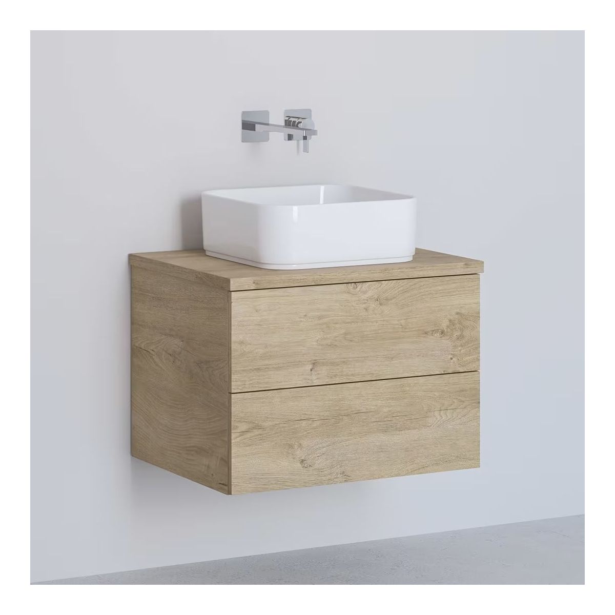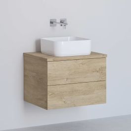 Waschtischunterschrank Kronenbach Cube 61 cm mit 2 Schubladen, mit Arbeitsplatte in heller Eiche