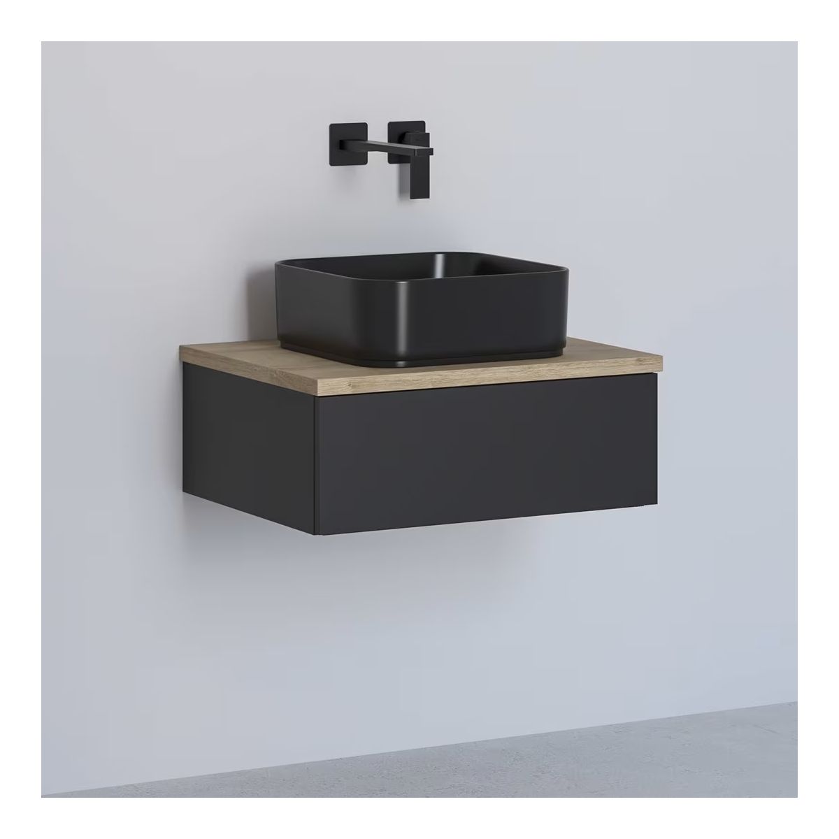 Kronenbach Cube Schrank mit Arbeitsplatte 61x48.7x44.5 cm Unterschrank hängend schwarz-eiche KBWTKOWTL611SMGH