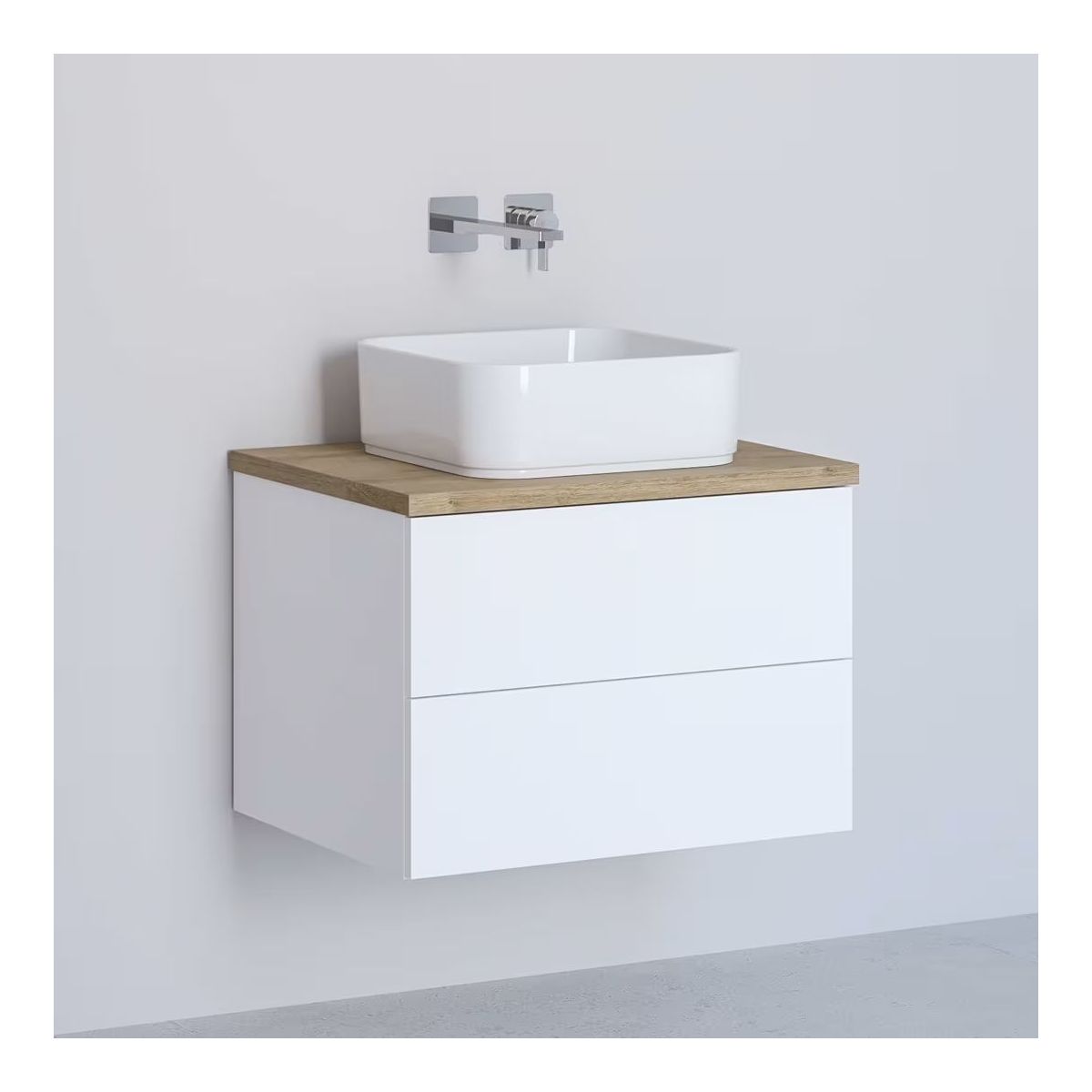 Waschtischunterschrank Kronenbach Cube 61 cm mit 2 Schubladen, mit Arbeitsplatte in heller Eiche