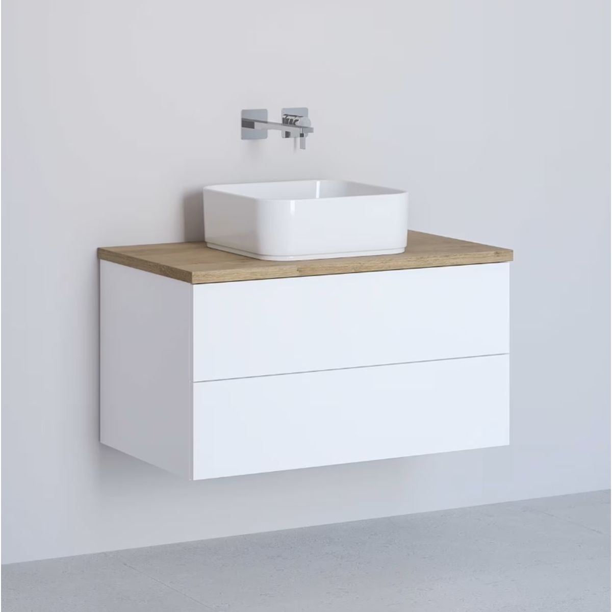 Waschtischunterschrank Kronenbach Cube 81 cm mit 2 Schubladen, mit Arbeitsplatte in heller Eiche