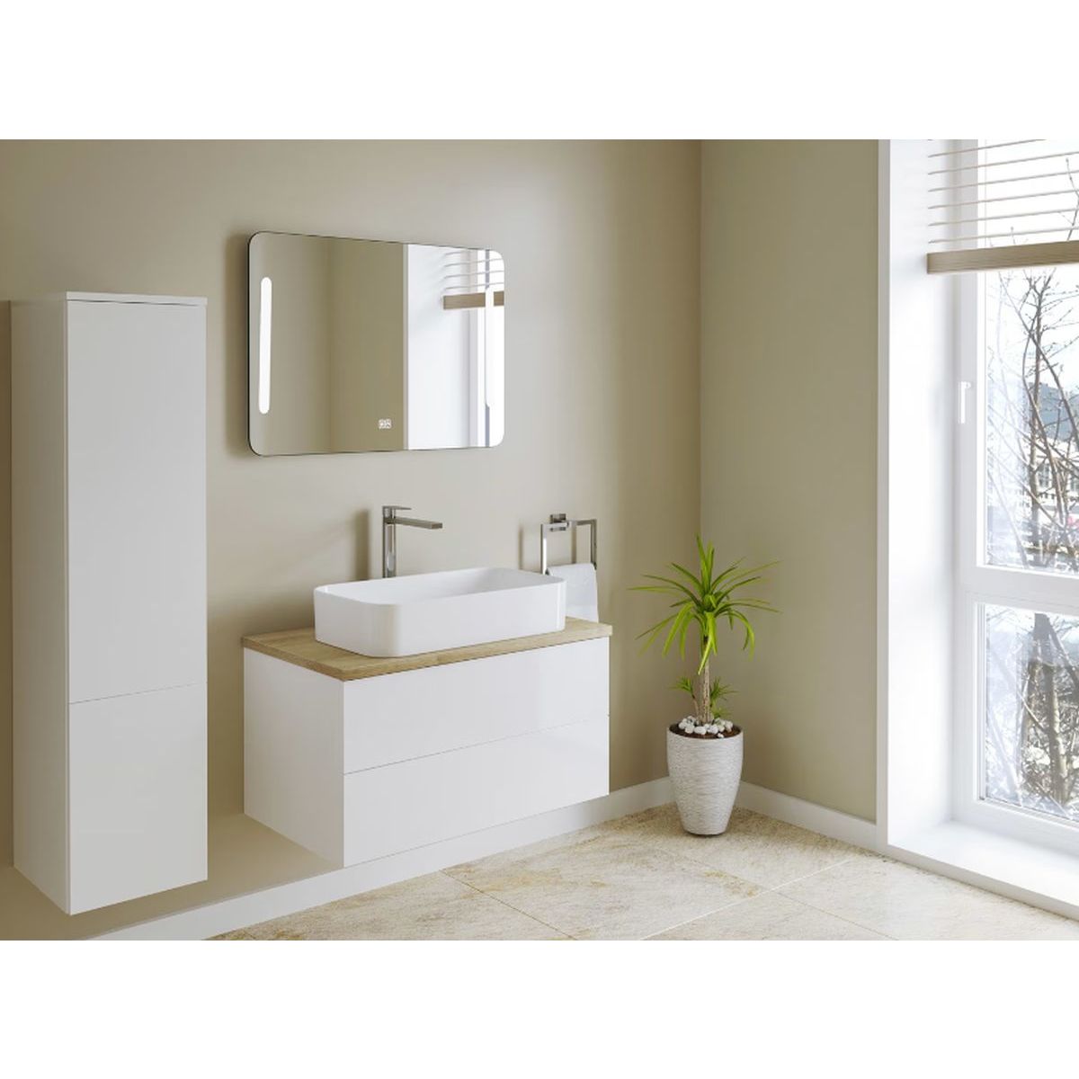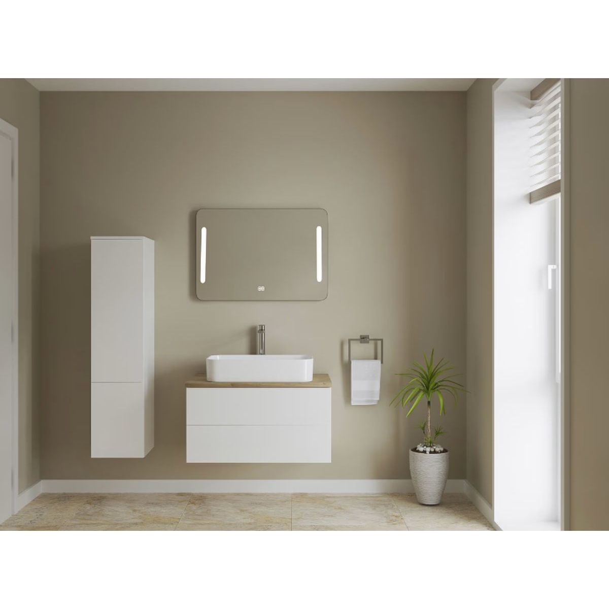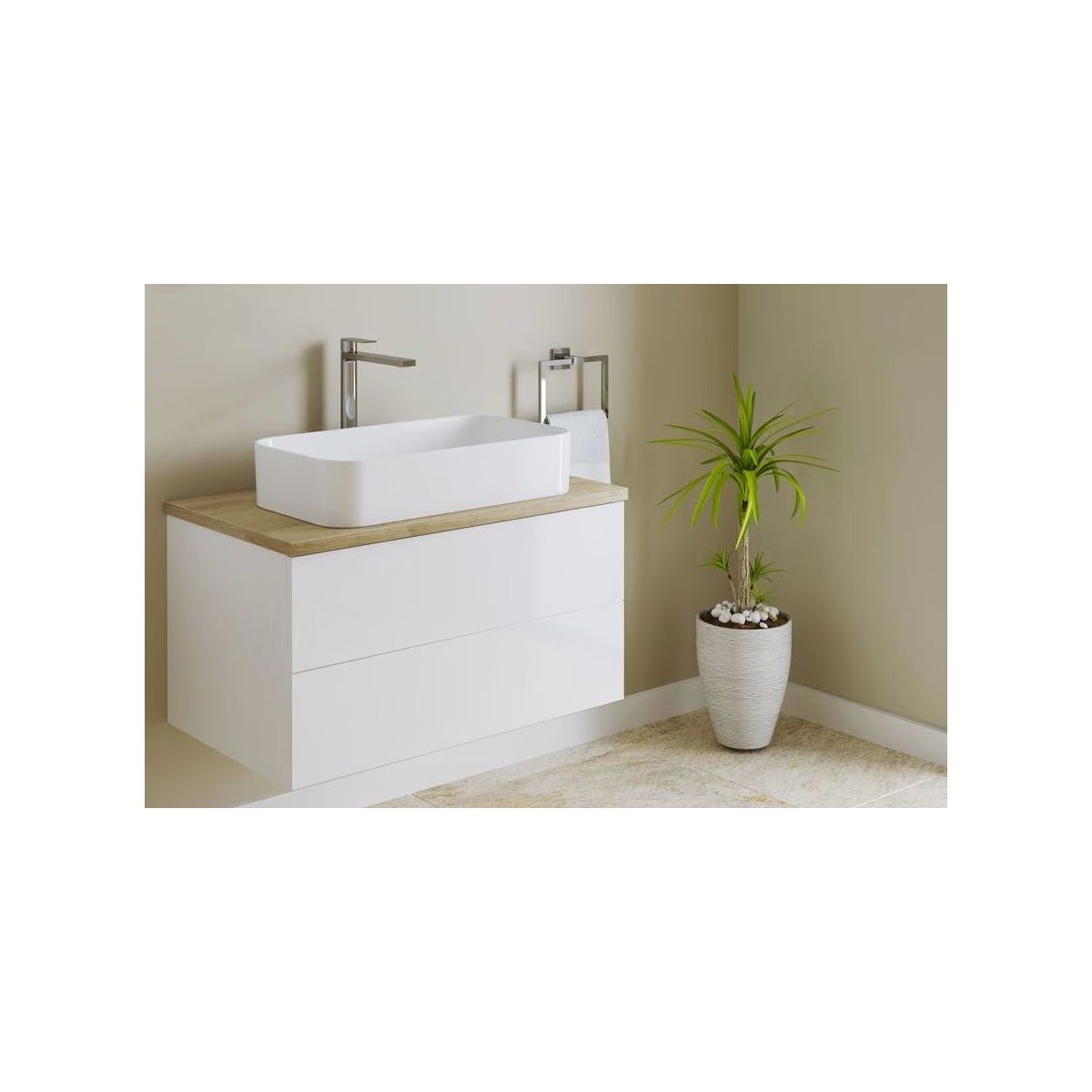 Kronenbach Cube Schrank mit Arbeitsplatte 81x48.7x44.5 cm Unterschrank hängend weiß-eiche KBWTKOWTL812WHGH