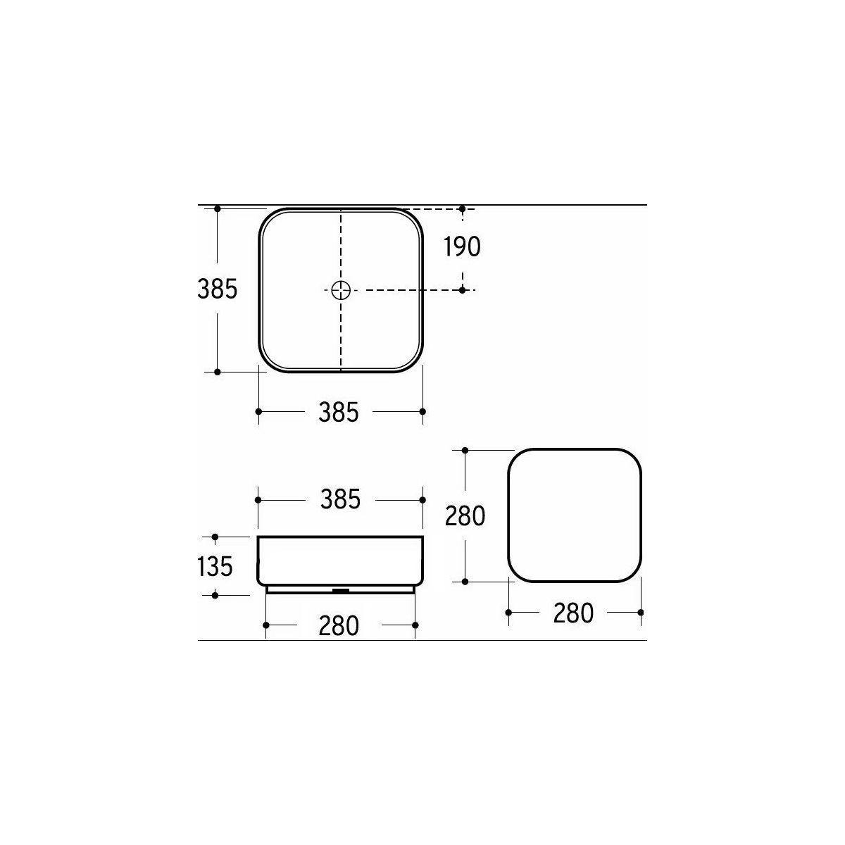 - Abmessungen: Breite: 38,5 Tiefe: 38,5 Höhe: 13,5 cm