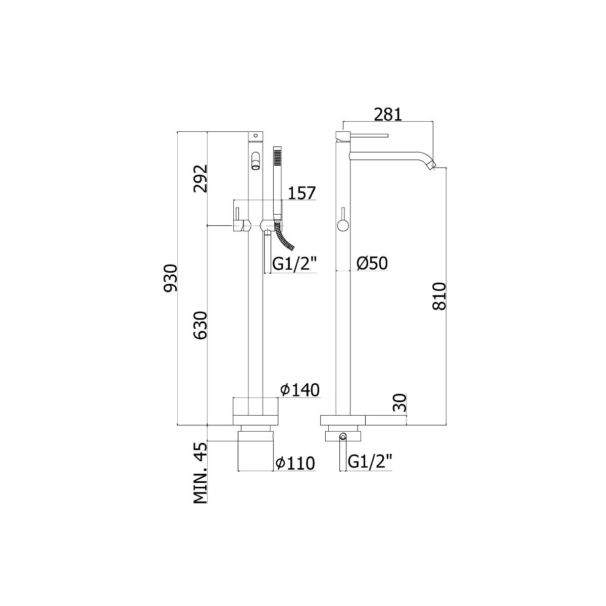 Kronenbach Lima 2.0 Black Badewannen- und Duscharmatur freistehend schwarz 100.1162SMKB