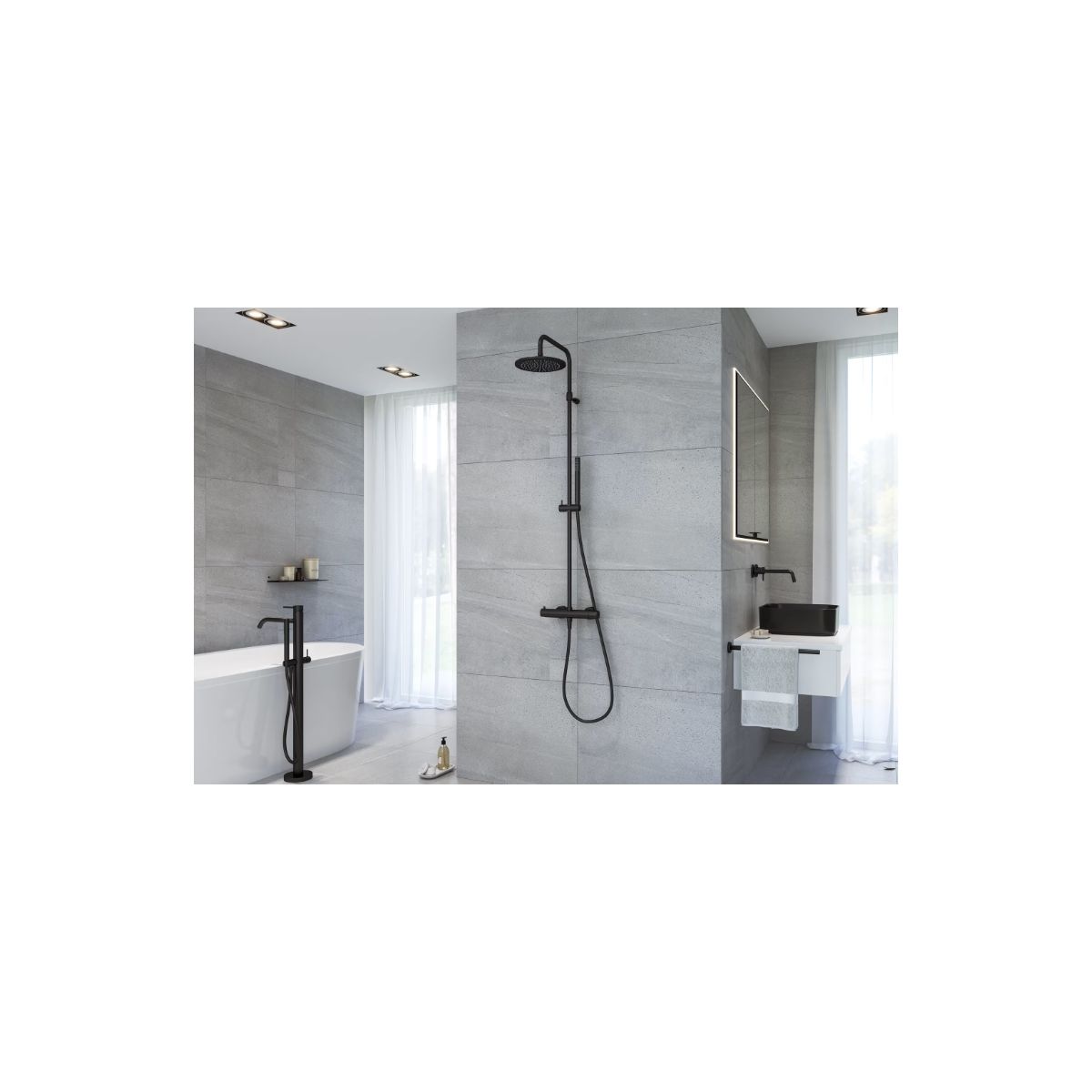 Kronenbach Lima 2.0 Black Duschset Wandmontage mit Thermostat mit Regenbrause schwarz 100.2821 SM