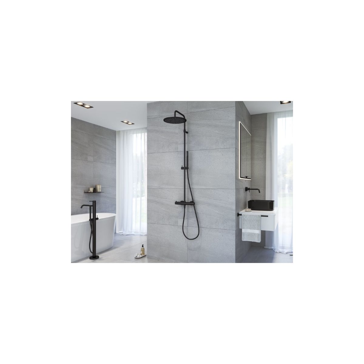 Kronenbach Lima 2.0 Black Duschset Wandmontage mit Thermostat mit Regenbrause schwarz 100.2822SM