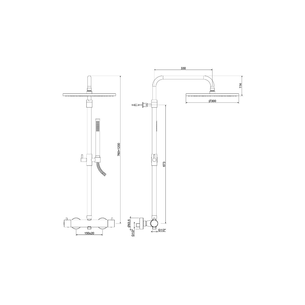 - Ausladung des Duscharms 30 cm