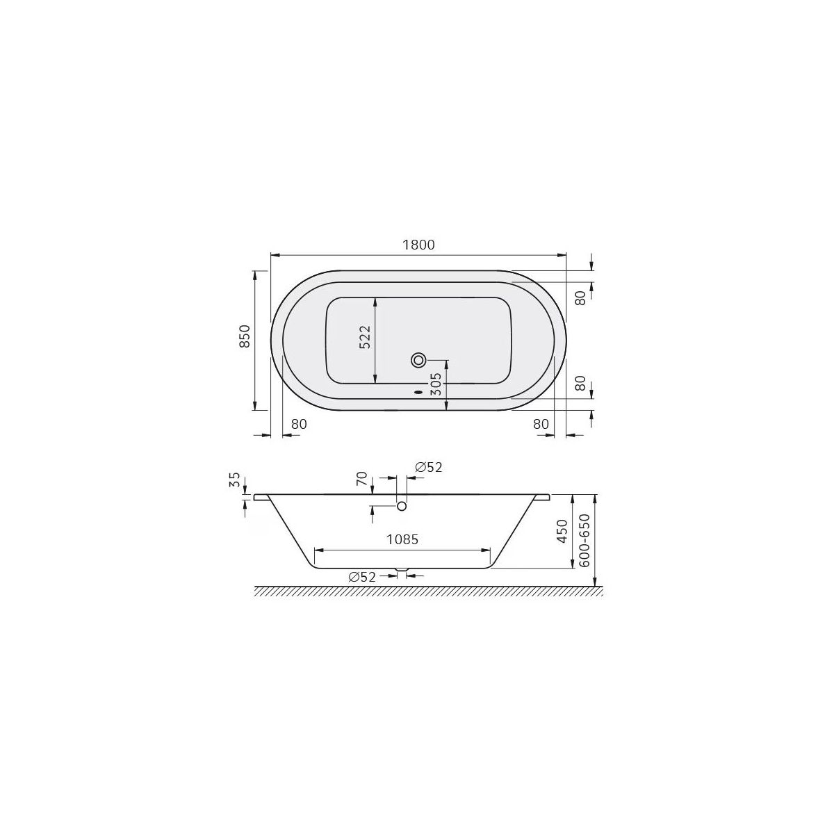 Kronenbach Tube Ovale Badewanne 180x85 cm weiß KBABO1885