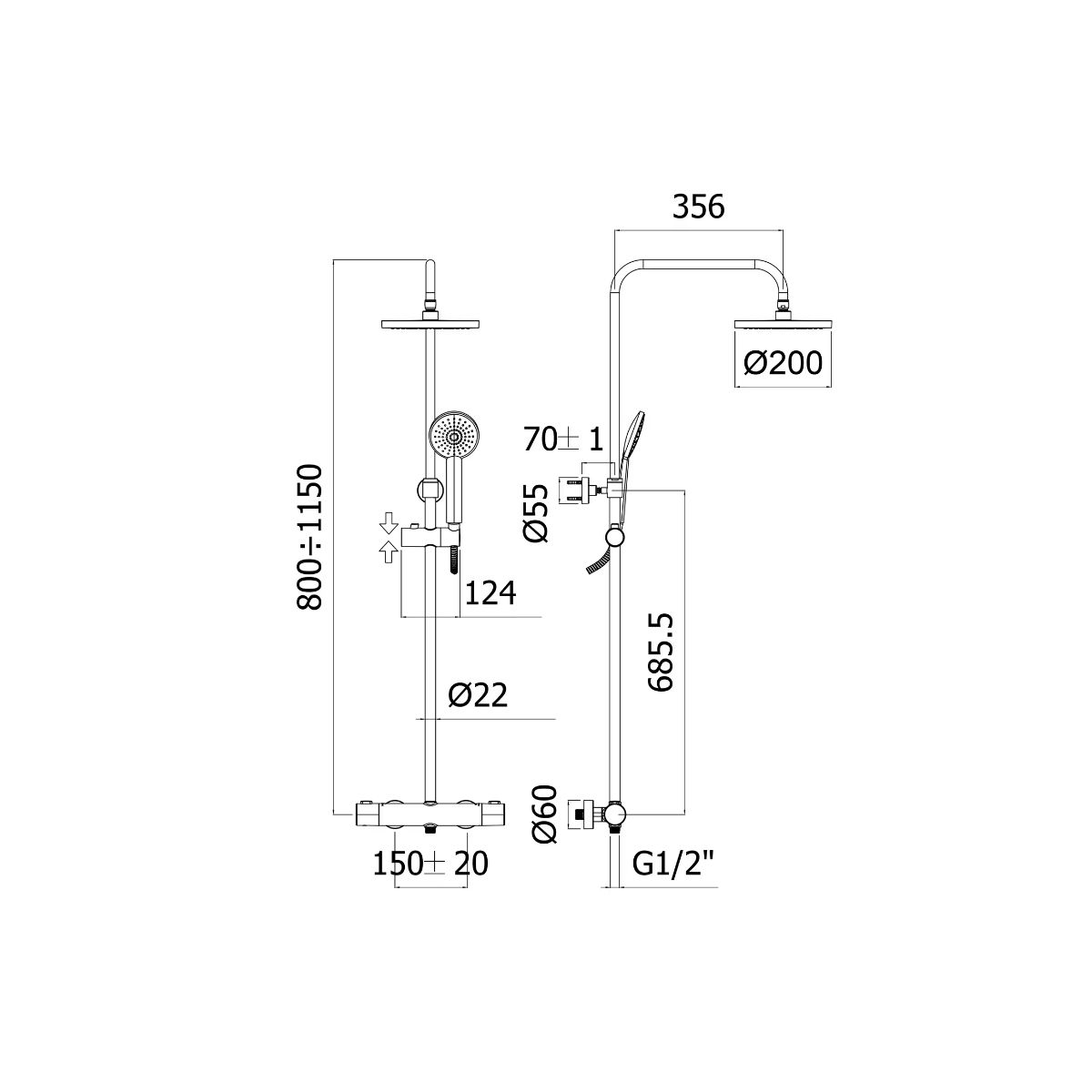 Kronenbach Universal Duschset Wandmontage mit Thermostat mit Regenbrause chrom 26648000 KB