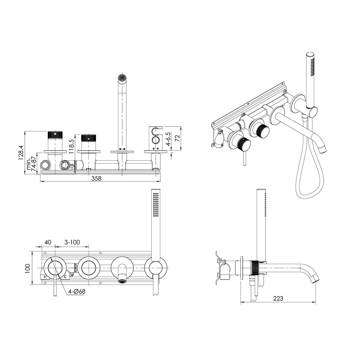 - Wannenauslauf mit einem Durchmesser von 2,4 cm und einer Reichweite von 19,3 cm