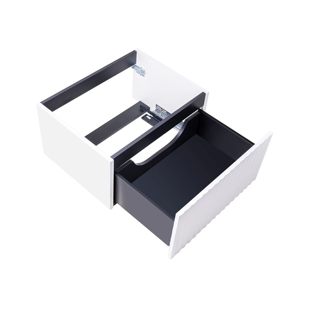 - Der Schrank verfügt über eine Metallschublade mit Vollauszug