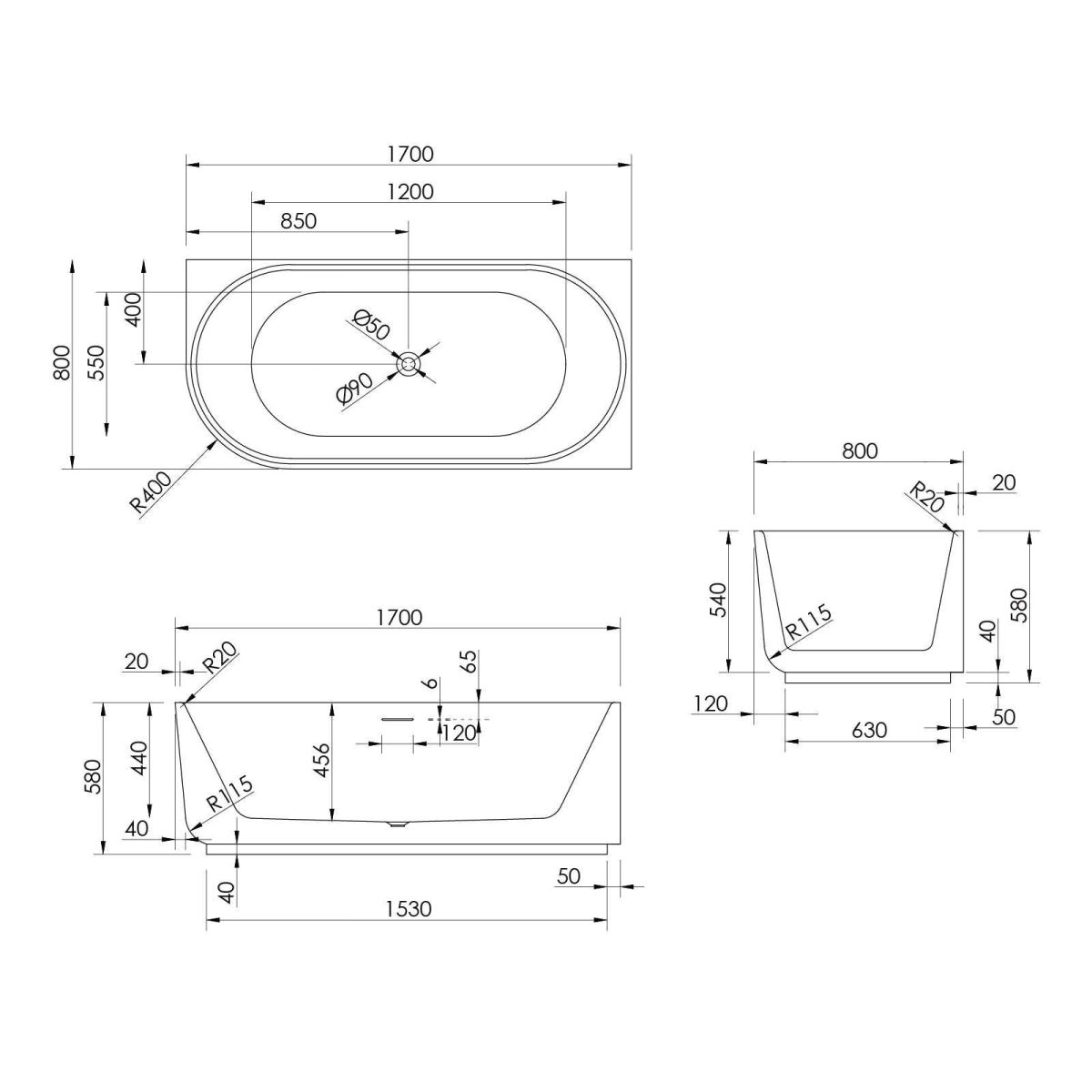 Ksuro 03 Eckbadewanne 170x80 cm oval weiß 31000000