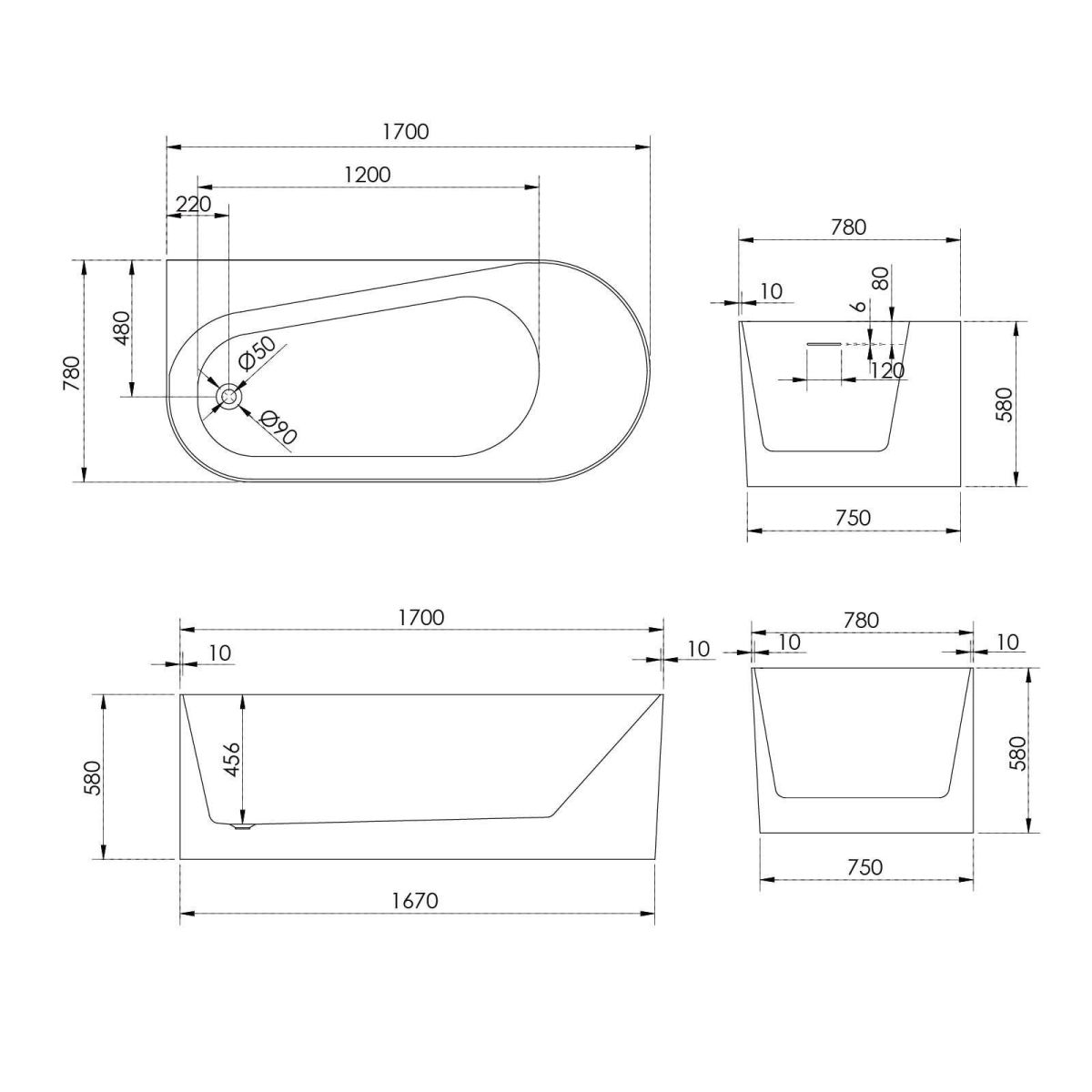 Ksuro 04 Freistehende Badewanne 170x78 cm oval weiß 32008000