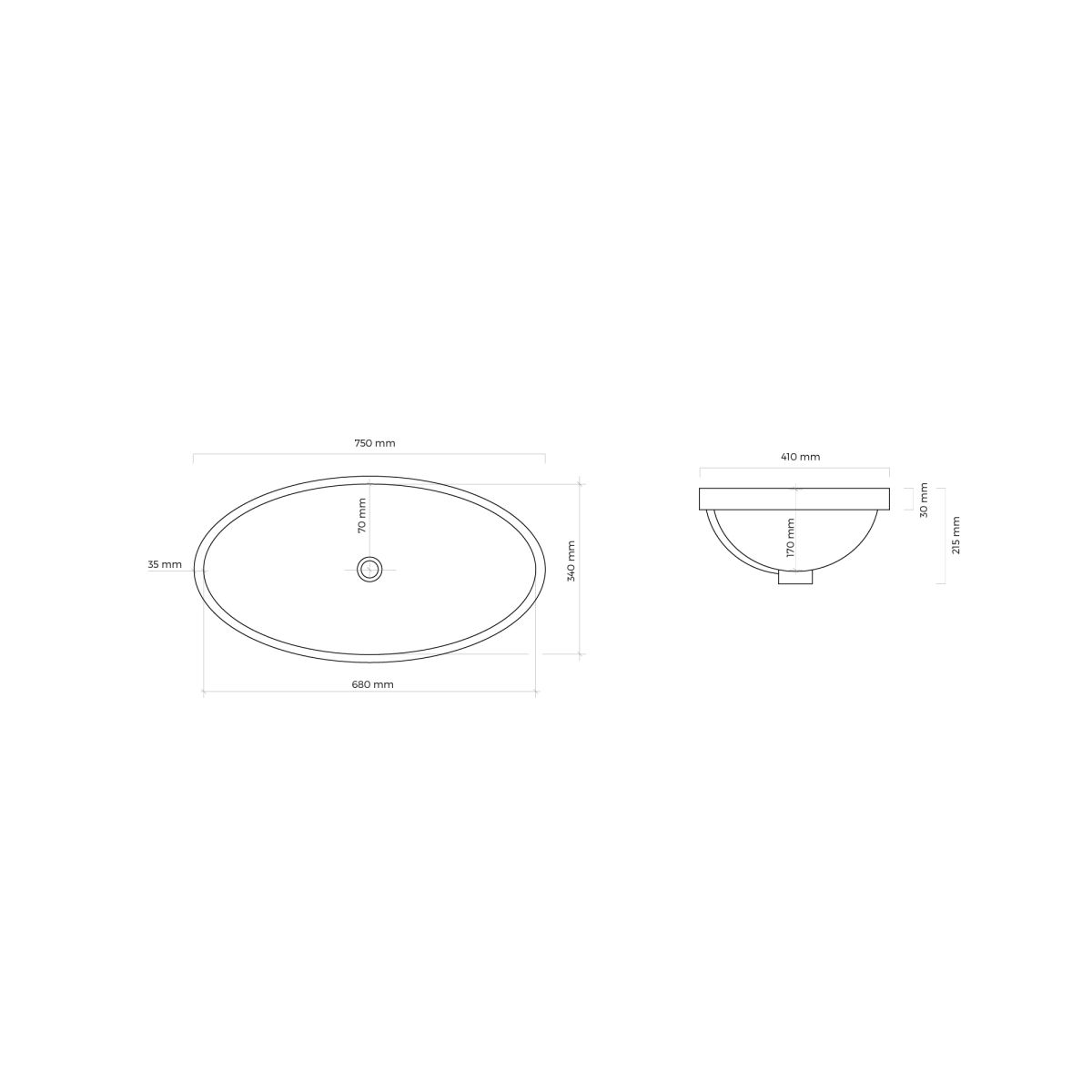 Ksuro 110 Waschbecken 68x34 cm oval Unterbauwaschbecken weiß 20815000