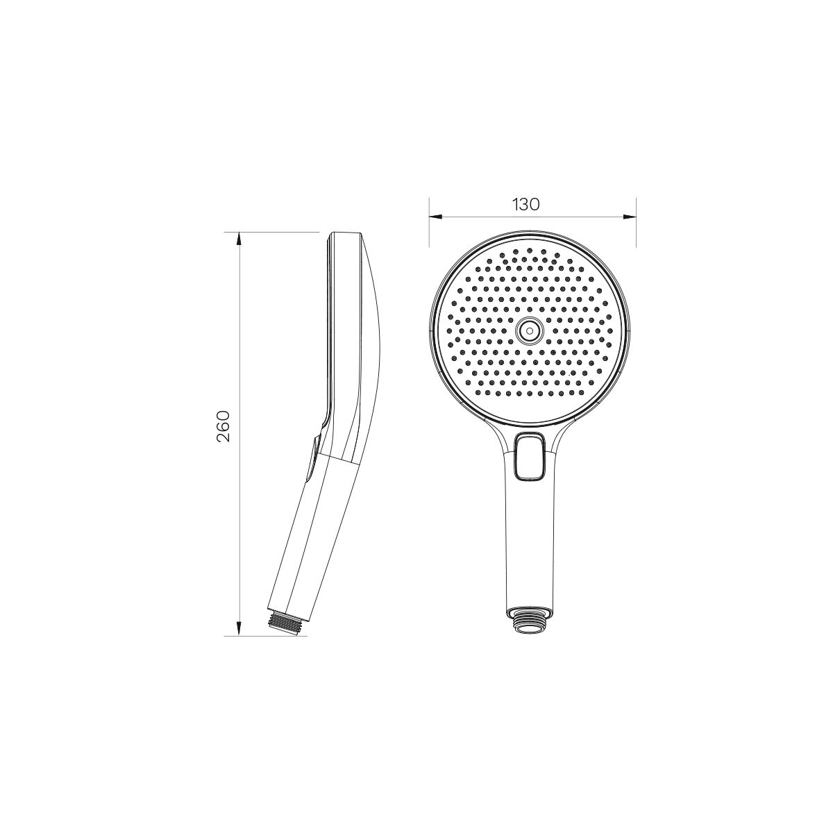 - Strahlwechsel per Knopfdruck, ermöglicht die Bedienung der Handbrause mit einer Hand