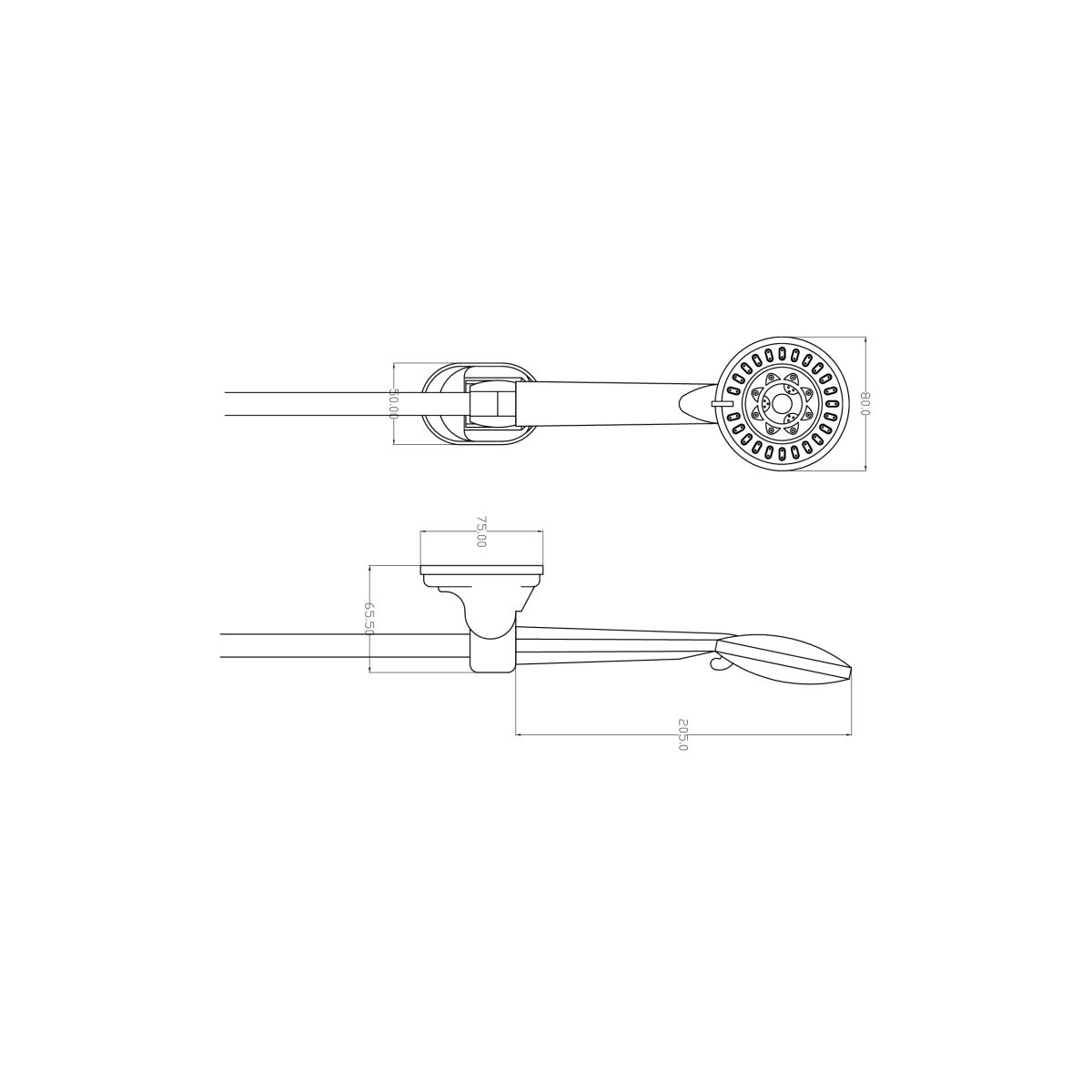- Abmessungen des Duschkopfs: 205 x 80 mm