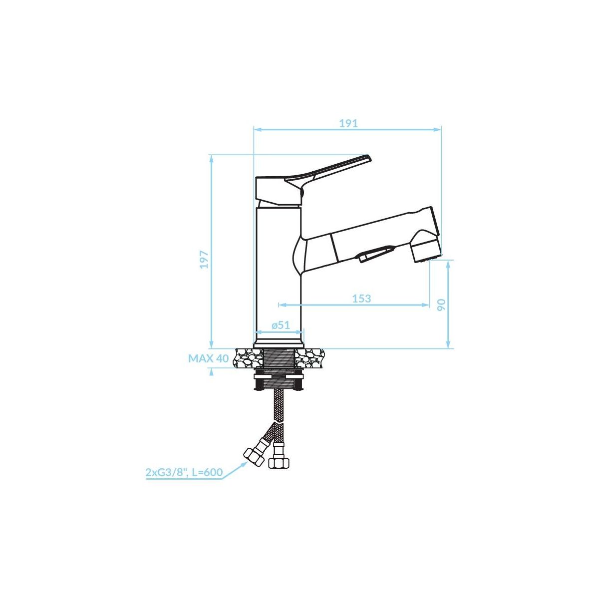 Fonte Standwaschbeckenarmatur mit ausziehbarem Auslauf