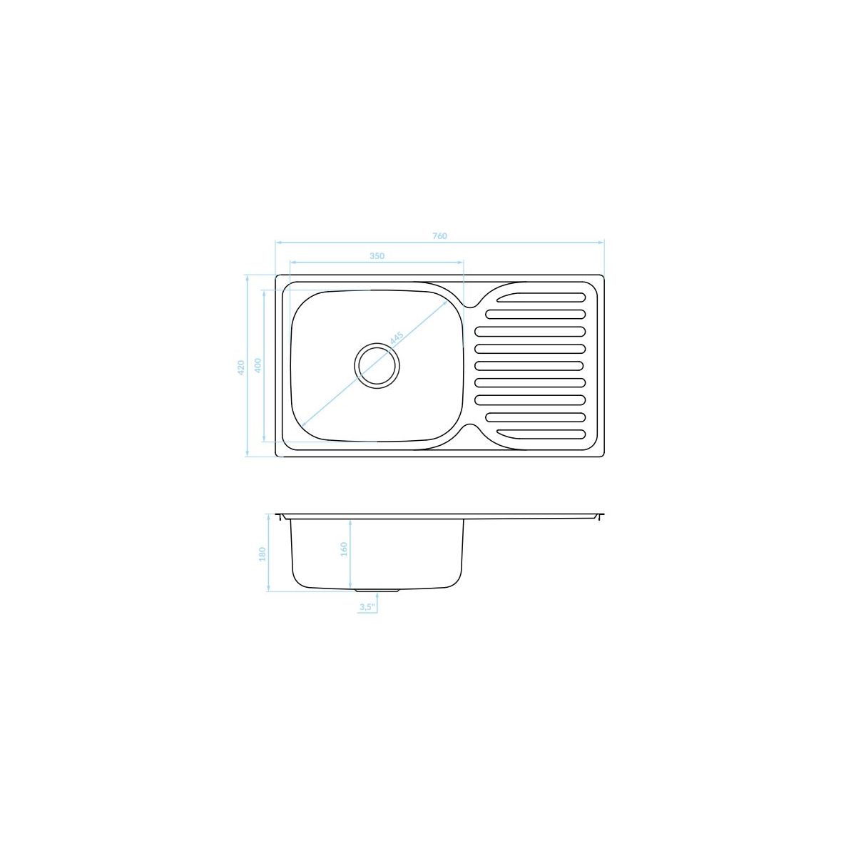 Kuchinox Orion Stahlspüle 76x42 cm SKO011T