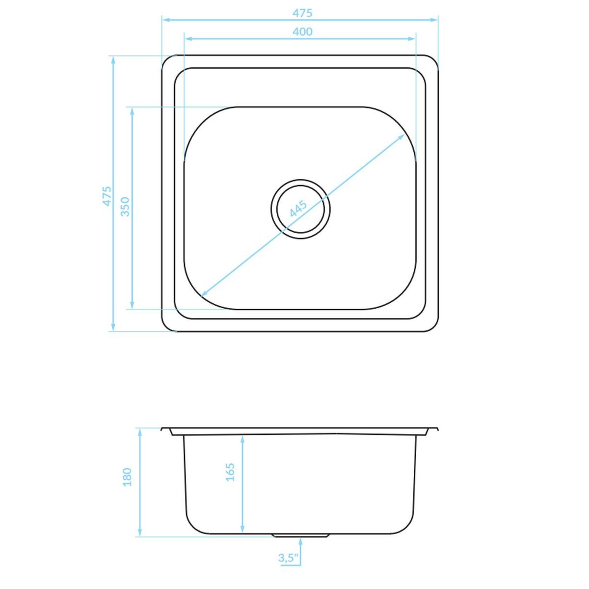 Kuchinox Standard stahlspüle 48x48 cm SKS010T