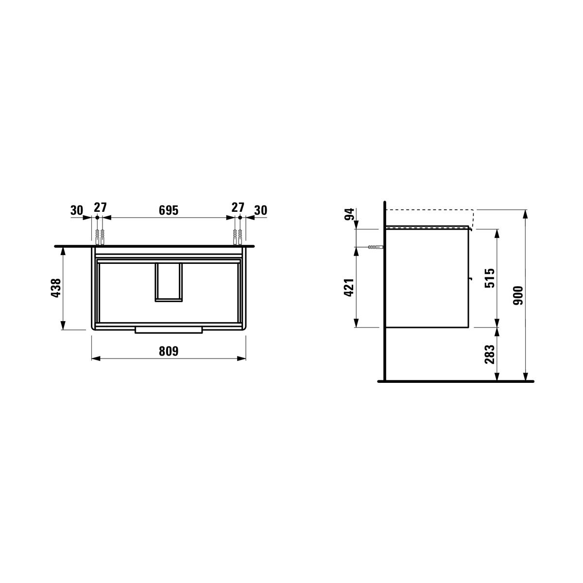 Laufen Base Kabinett 80.9x44x53 cm Unterschrank hängend weiß H4023921102611