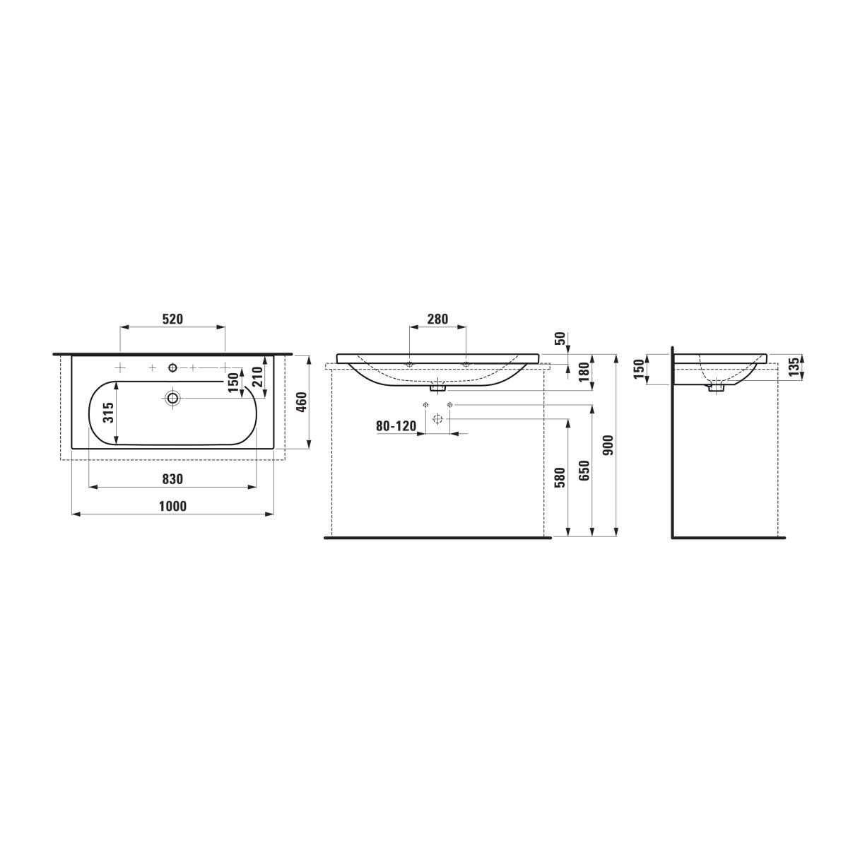 Laufen Lua Waschbecken 100x46 cm rechteckig Klassisch weiß H8160890001041