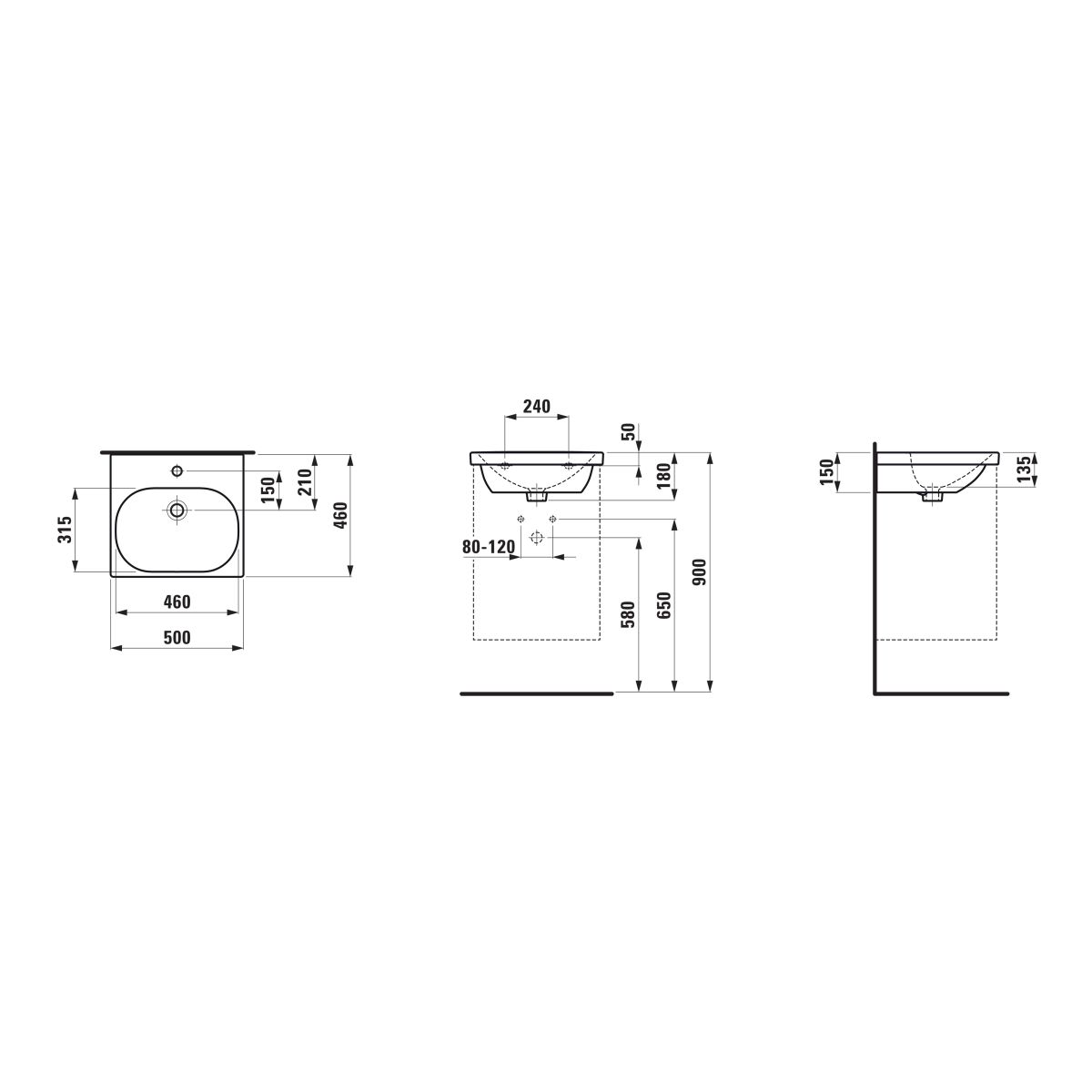 Laufen Lua Waschbecken 50x46 cm rechteckig Klassisch weiß H8160810001041
