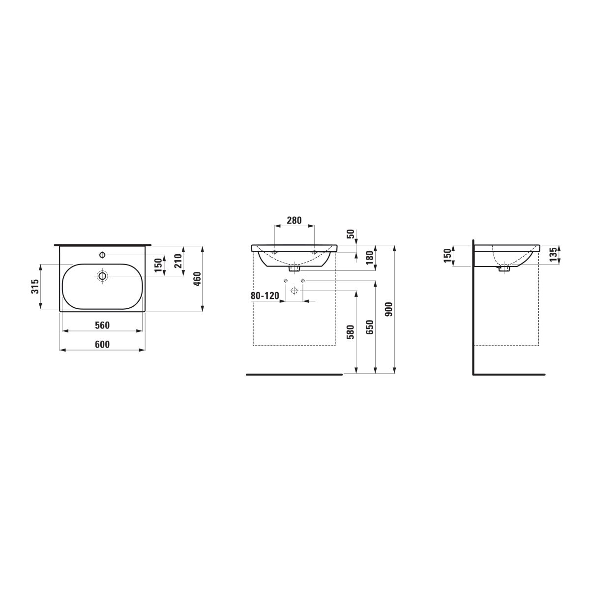 - Position der Wasserhahnbohrung: keine Bohrungen